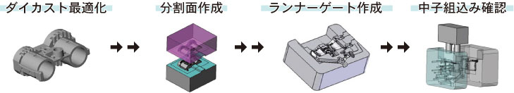製品設計から金型設計に移行する事前でダイキャスト技術面の十分な検討を加えることにより、問題発生を防ぐことができます。